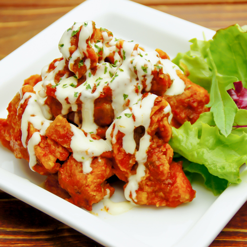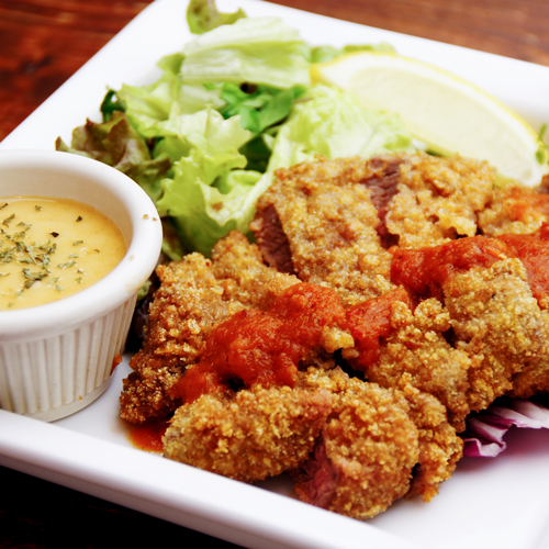 サクサクのフィシュフライに、 自家製のランチ(牧場)ソースを添えました。