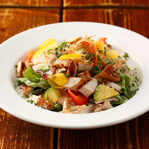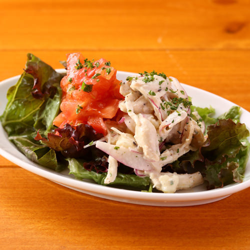 ポヨピエルナ(鶏むね肉)のグリルを クリーミードレッシングで和えたおかずサラダ。