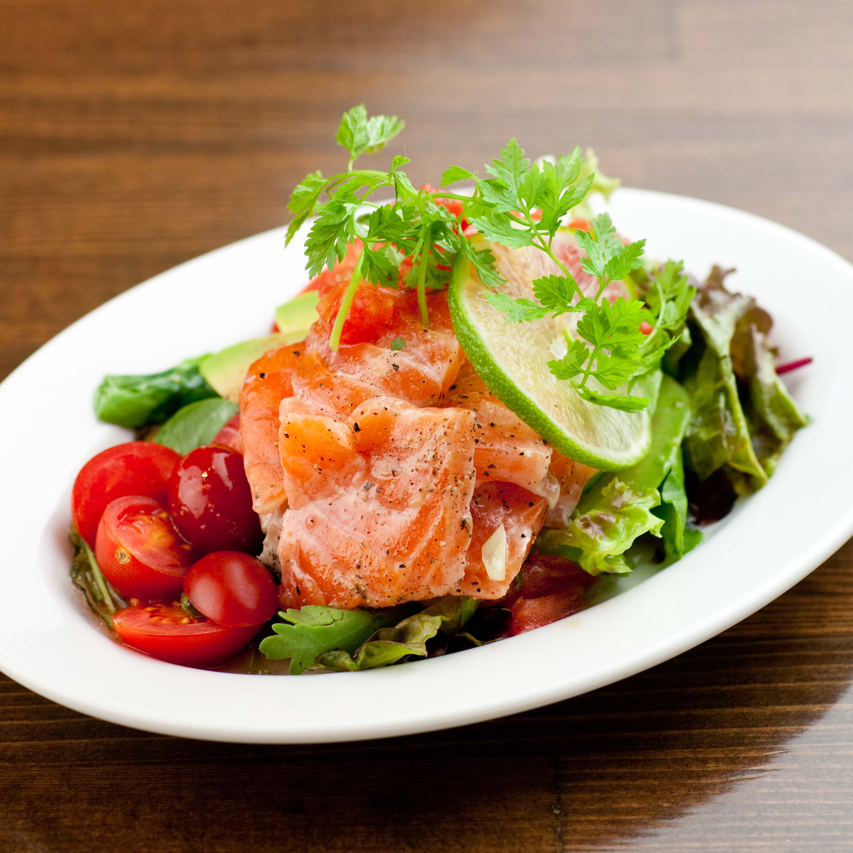 フレッシュサーモンとアボカドカルパッチョを メキシカンライムで和えたコンビネーションは絶妙。