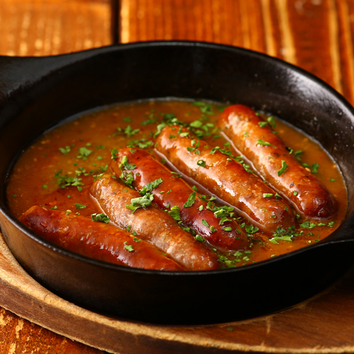 グリルしたチョリソをサルサロハで仕上げたアテの定番。