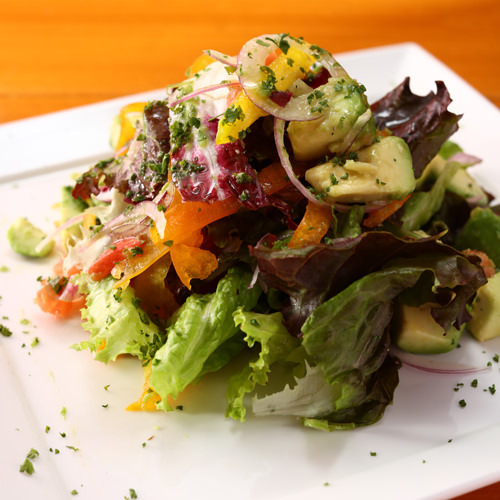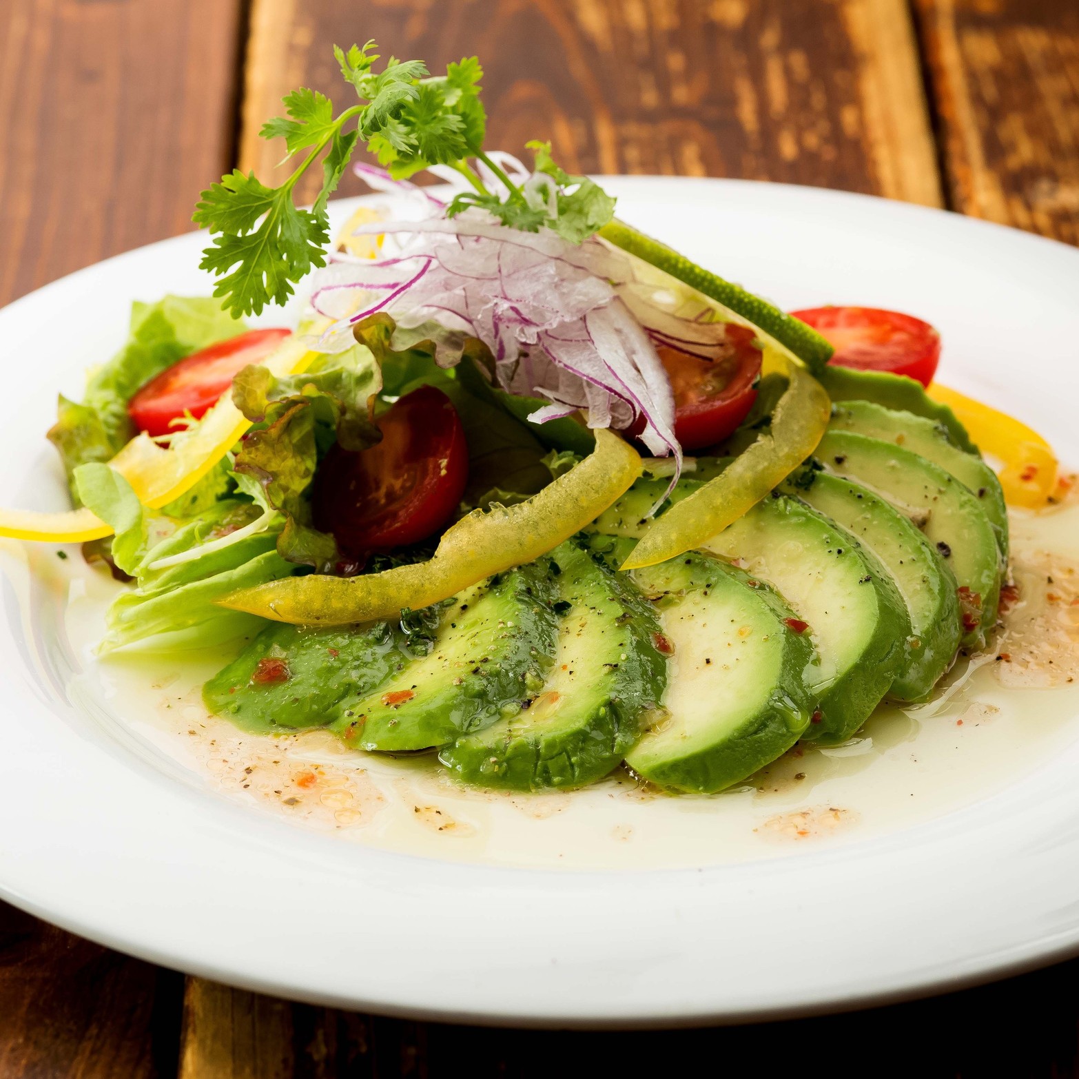 新鮮なアボカドを贅沢に使って、マンゴーのドレッシングで仕上げました。