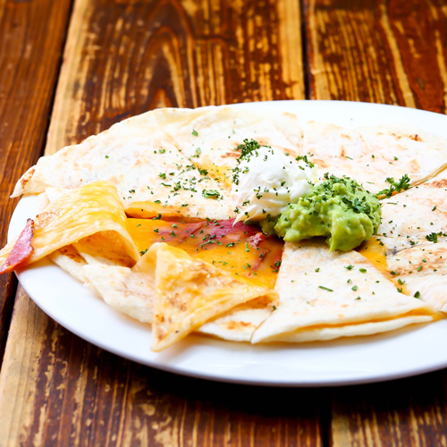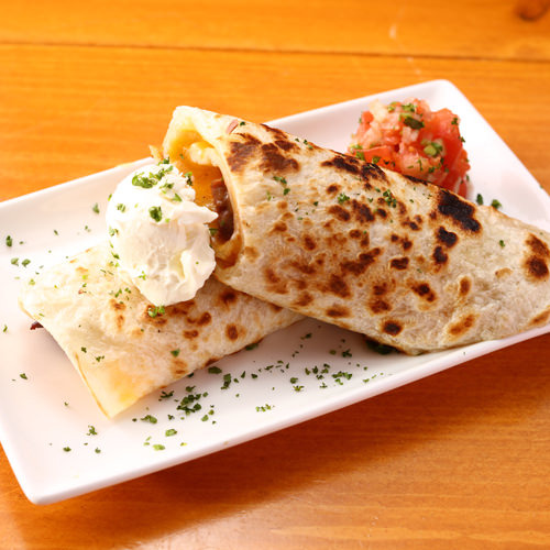 燻製ビーフとたっぷりチーズをもちもちのトルティーヤでサンド。