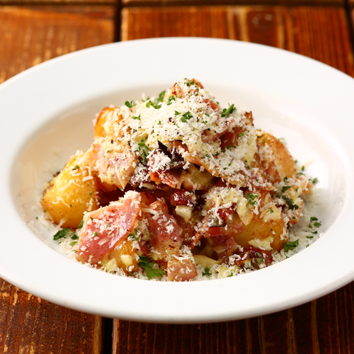 メキシコ ティファナ生まれのシーザードレッシングで ベーコン&ポテトを和えた温サラダ。