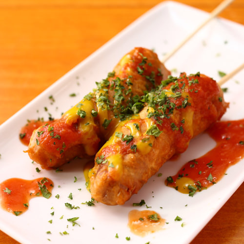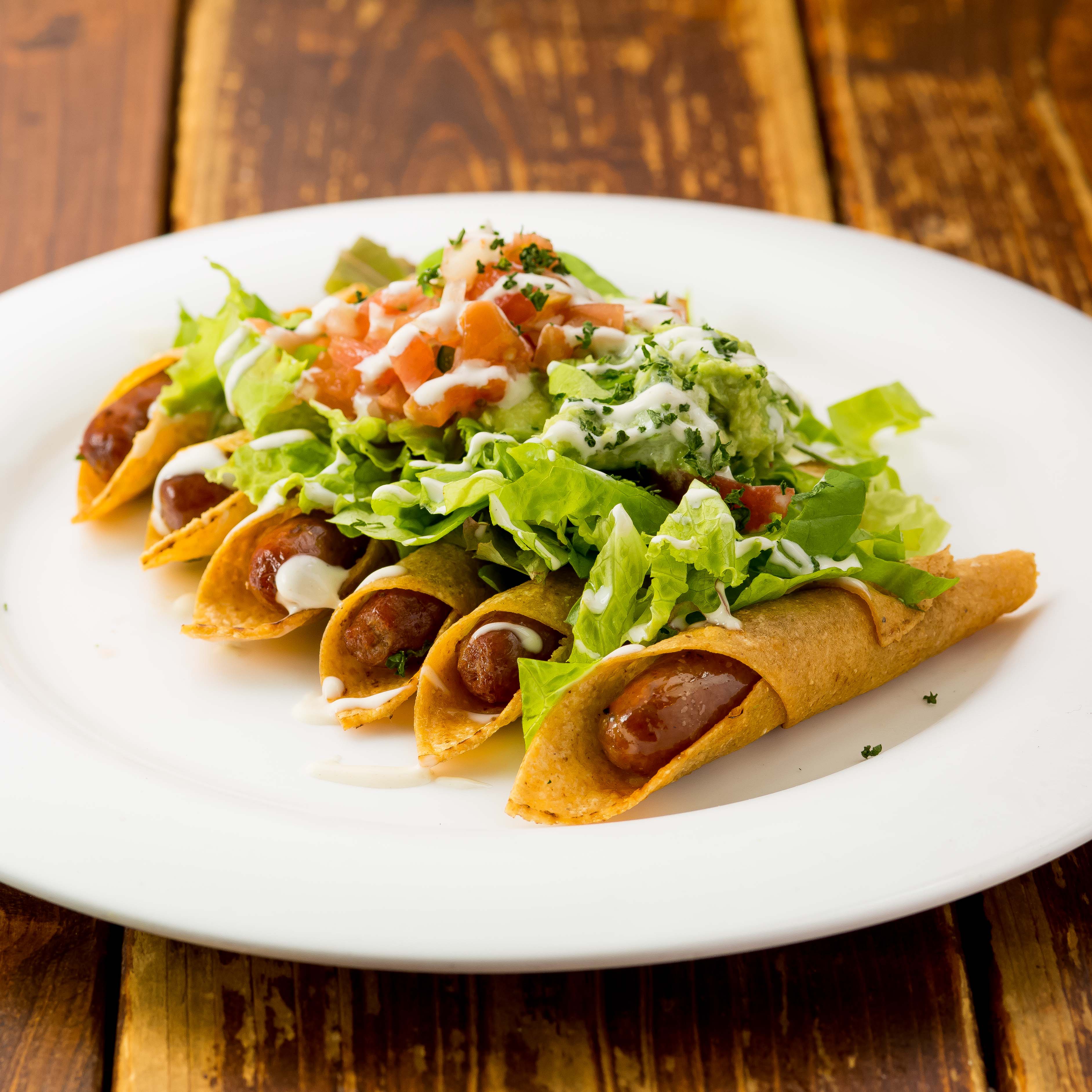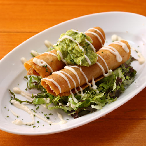 チョリソをコーントルティーヤで包んで揚げた、 メキシカン春巻き。