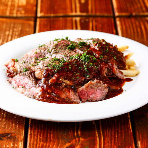 柔らかい牛リブロースに、チレワヒーヨブレンドの オリジナルグレービーソースをかけました。