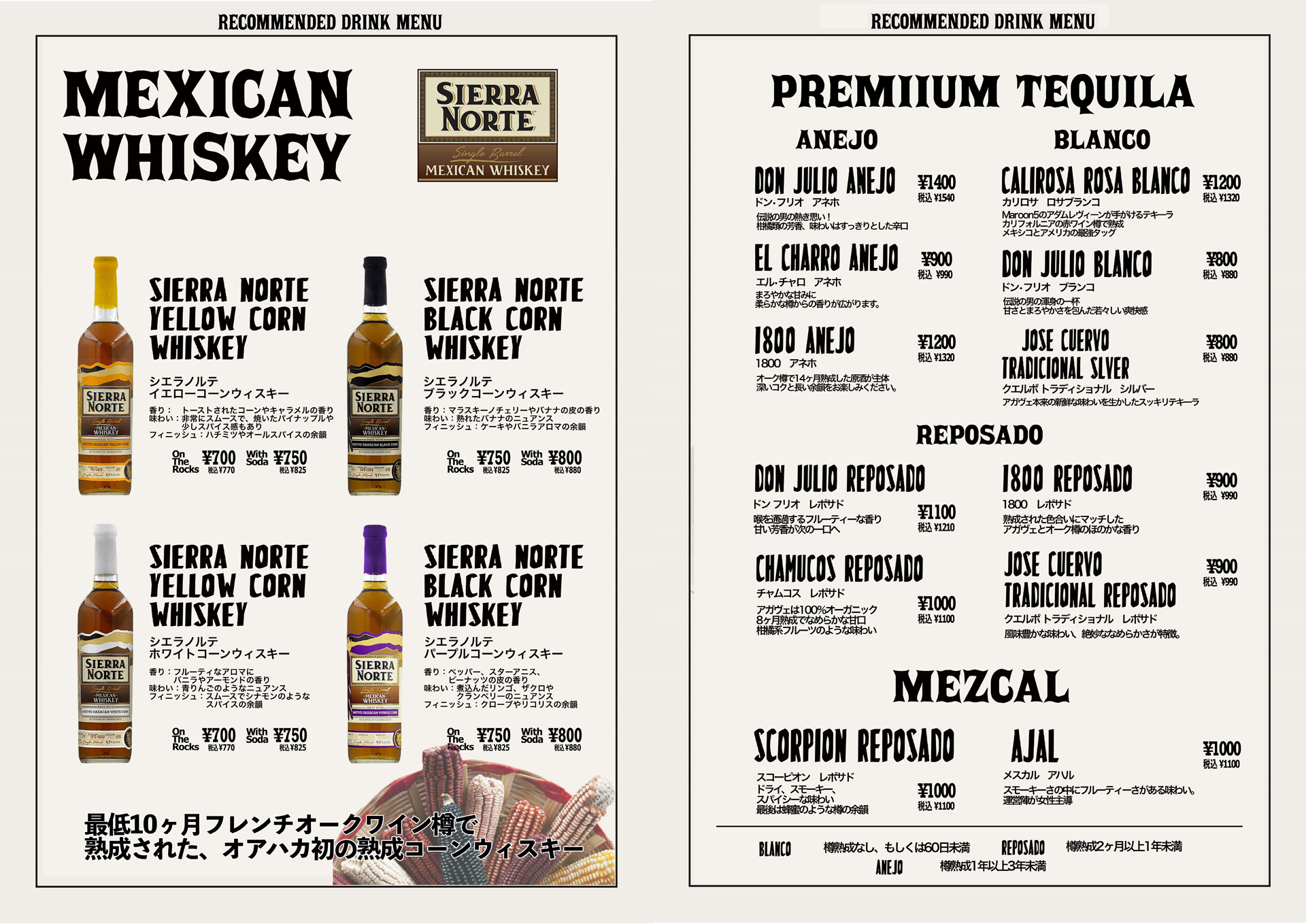 他店ではあまり置いていない100%アガベを使用したプレミアムテキーラを楽しめます!