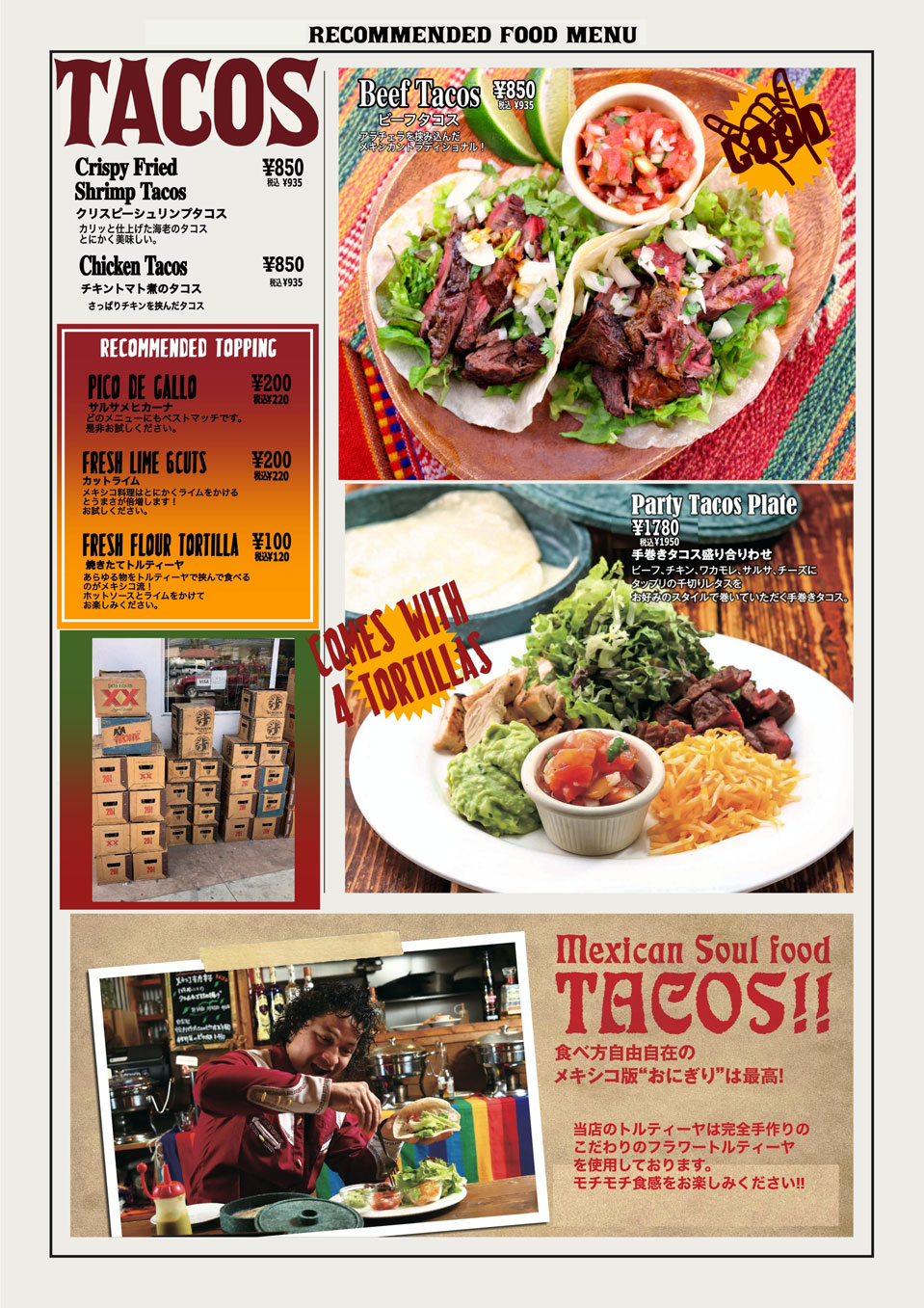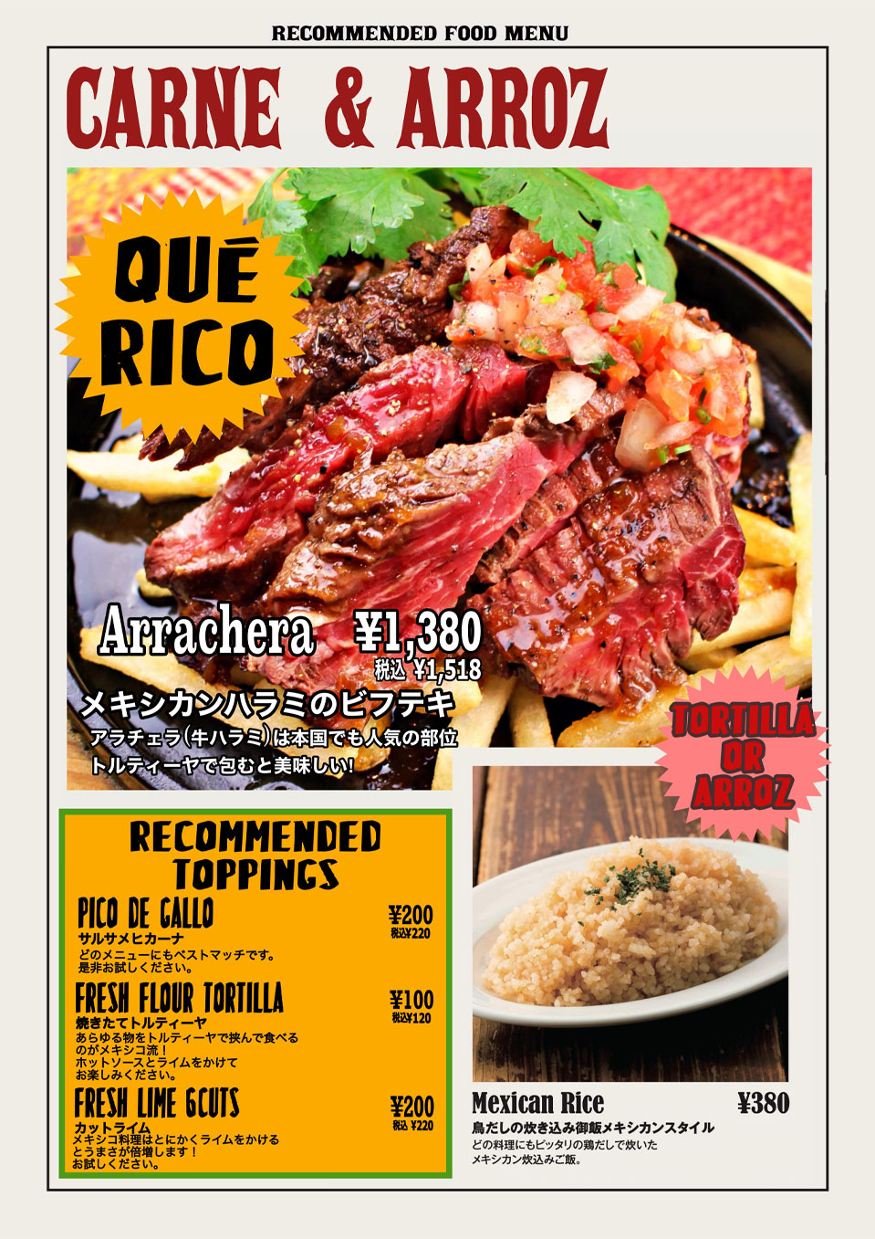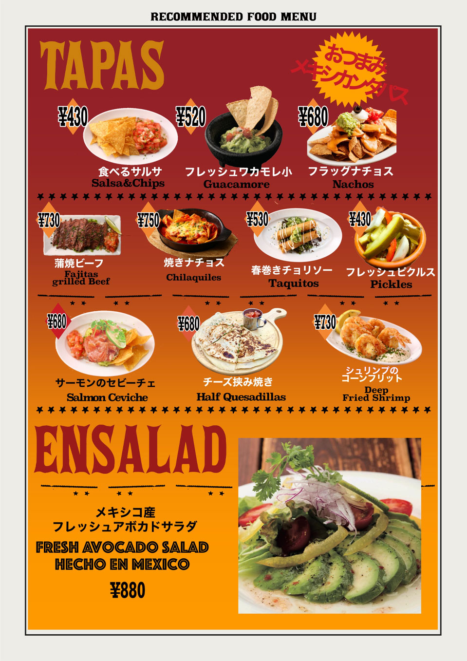 美味しいメキシコ料理が食べられます。ドリンクも軽めのものからメキシコビール、種類豊富なテキーラまであり、日本では珍しい、メキシコ人のビールの飲み方であるミチェラーダも楽しめます。